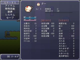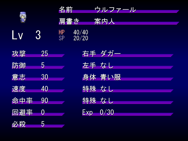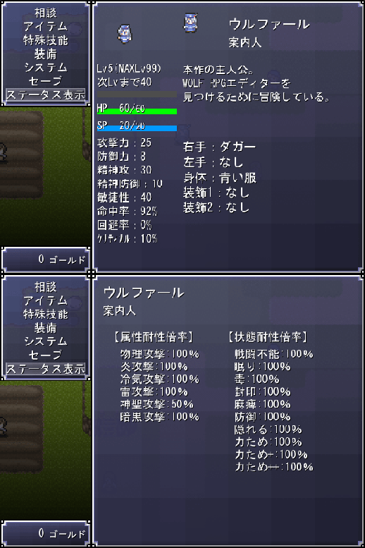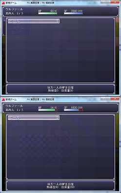 [1] ステータス振り分けコモンver,1.00 [ status huriwake_100.zip: 5.30KB ] 【説明】 【1】 kasu ■ 説明 ■ このコモンは、レベルアップ時にステータスを振り分けることができます。 ・レベルアップ時にステータスポイントが貰え、そのポイントの回数、ステータスが振り分けられる。 ■ 導入方法 ■ 1,コモン73番に「073_×┣ Phase6 戦闘結果表示.common」を読み込む。 2,可変データベース0番に「cdb000_主人公ステータス」を上書きする。 3,「ステ振分設定.dbtypeset」を可変DBのどこかに読み込む。 4,おわり。 ■ 著作権 ■ ■ 更新履歴 ■ 4/9 公開 ver,1.00 【一言】 (→コメントを書き込む) [12/09 09:02] keta お借りします! [02/01 10:12] annko お借りします [02/15 13:07] hbki3 ver2.00版を是非作って欲しいです。お願いします。 |