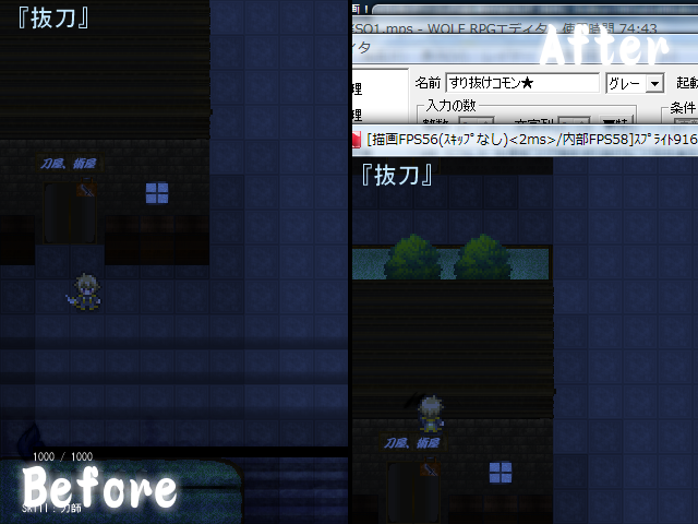 【ファイル】[1] 本体&説明書 [ surinukekomonn.zip: 1.30KB ] 【説明】 【1】 tikubonn(つつじ椿) はじめまして、前のコモンを知ってる人はお久しぶりです(^◇^) ツクールシリーズにあった『CTRLキー』を押すと主人公が壁なりテーブルなり、なんなりすり抜ける機能です(^ ^) 【いままでの作品】 【一言】 (→コメントを書き込む) [02/28 12:25] のの ダウンロードさせていただきました〜 |