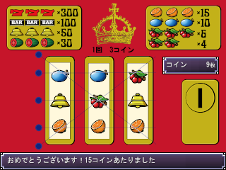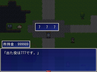 [1] SLOT MACHINE ver,1.30 [ SLOT MACHINE ver,1.30.zip: 265.89KB ] 【説明】 【1】 NEWT このコモンはスロットゲームを設置するコモンです。 確立変動の機能も付けてみたのでやってみてください^^ 自分でリールの目や当たったときにもらえる賞金も設定できます! 初めて作ったコモンなので不具合などが多いかもしれませんが よろしくお願いしますm(_ _)m ver,1.30にて確立変動中にやめると数字が残るミスを修正しました。 【一言】 (→コメントを書き込む) [10/12 13:34] 偶然 いいですね!アイコンはicon116.pngでもおすすめ! [09/19 18:11] m 遅くなりまし。neityさん、ありがとうございました!変えたことで無事に使うことができました [09/06 02:08] neity 連投すみません。処理がいろいろ抜けていてスロットにお金を入れたはずが増えていたり(当たりが出たら減るかも?)、基本システム2には対応していないようなのですみませんが改造許可の下りている箇所以外も改造しても構いませんでしょうか?それ以外にも別のコモンとの関係でいろいろと弄りたい箇所があるのですが。 [09/05 21:34] neity ↓今更だけど拡張子かえれば導入できるようです [07/04 20:24] m すみません。このコモンを読み込もうとしたらコモンファイルが見当たりません。 |