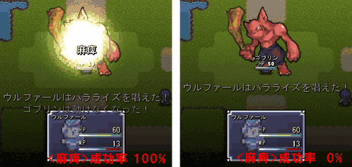 敵キャラクター「ゴブリン」の麻痺状態への耐性を