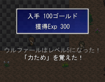 | 【6】 さて、テストプレイ ウルファールのレベルが5に上がった時に「力ため」 を覚えることが出来たら成功です。 おつかれさまでした。 |