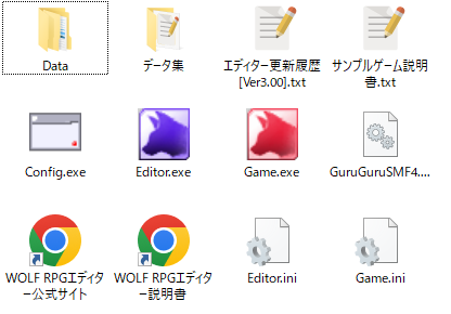・WOLF RPGエディター説明書へのショートカット … 説明書のサイトを開くリンクです。