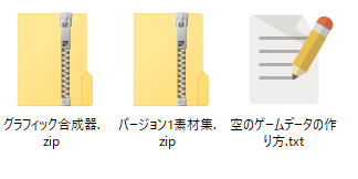 ・サンプルゲーム説明書.txt … サンプルゲームの説明書です。説明書を作る際の参考にしてください。