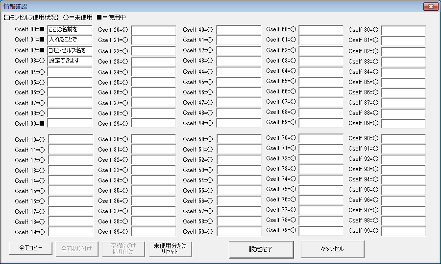 未使用分だけリセットを押すと、使用されてないコモンセルフの名前を空欄にします。