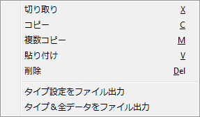 タイプまたはデータの一覧を選択中、以下の入力で新規タイプ、またはデータの挿入・抜き出しが可能です。