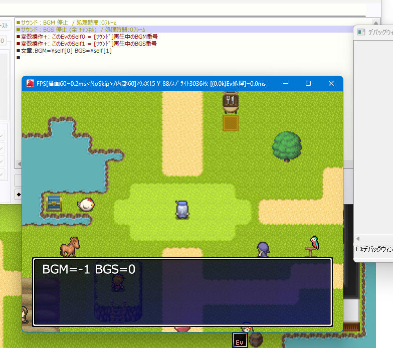 「その他」の「[サウンド]再生中のBGS番号」にて、BGSが再生されていない場合に