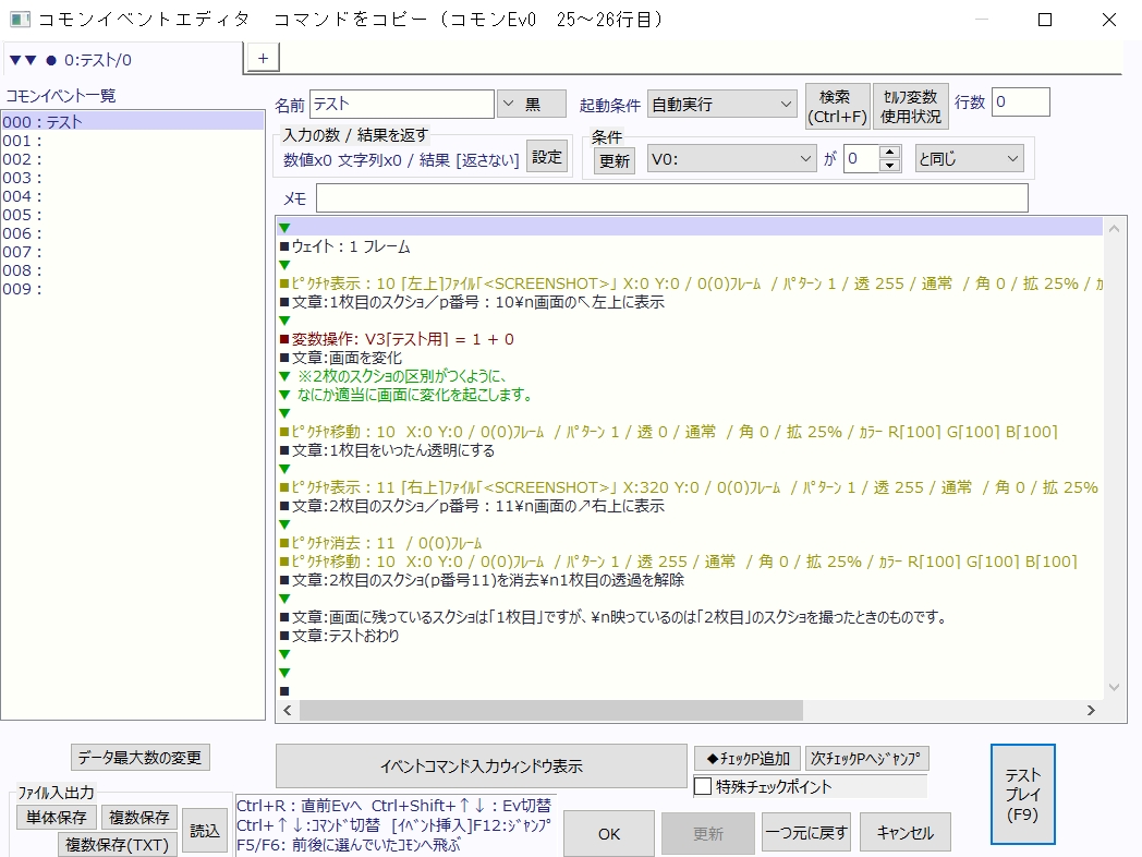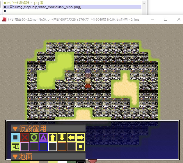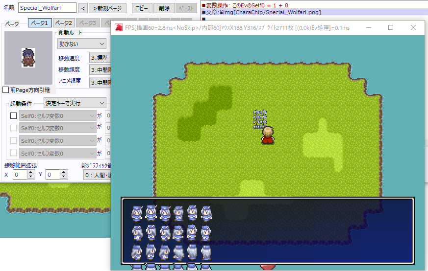 その後マップEvを追加、1個は起動条件無し、もう1個は起動条件にV0が1と同じ。