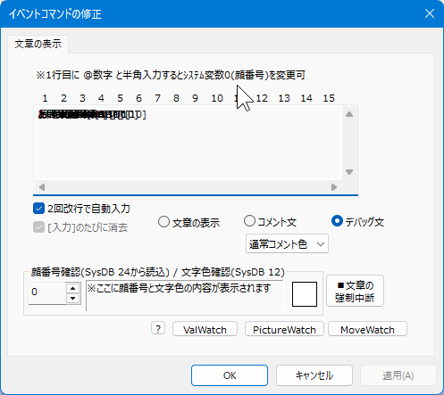 ◆2025/10/15◆ 【Ver3.652以降でEditor.exeのボックス内文字化けバグが修正されました】 コマンドを「編集」した際、以下の画像ように文字化けするバグがWindows11の「KB5065789」の更新後に発生していました。 Ver3.652以降ではこの問題は解消済みですので、必要な方は最新版をご利用ください。 (なお、その更新によってGame.exe上のゲーム挙動がバージョン更新で変わってしまう場合があります。 その場合は「ゲーム設定」の「Game.exe動作バージョン調整」で前バージョンの挙動に戻せますので、 適切なバージョンに変更してください) 【文字化けした文章入力画面】 ![]() ◆2021/02/27◆ 【Game.exe、Ver2.25で「文字列操作」で(Microsoft IMEで) キーボード文字入力が二重入力になる問題に対応しました】 Microsoft IMEのバージョンアップにより、正常に文字入力ができなくなるケースが発生したため、Ver2.25のGame.exeで対応しました。 → 半角文字が2重に入力されたり、日本語入力時に余計な半角文字が入る問題が発生していました。 詳しくは以下の動画を参照してください。これがVer2.24以前で起きる問題の再現映像です。 最新版ウディタではこの不具合が解消されていますので、必要な方は上書きをしてください。 【プレイヤー側でこの文字入力問題に対処したい場合】 この二重入力は、Microsoft IMEのバージョンが新しくなったことに起因して発生した問題です。 以下のいずれかの対応を取ることで、問題が解消されるようです。 ●Microsoft IME以外の日本語入力ソフトを使う → たとえば「Google 日本語入力 https://www.google.co.jp/ime/ 」は無料で使えます。 ●Microsoft IMEの設定から「以前のバージョンのMicrosoft IMEを使う」をオンにする。 → 設定方法の紹介ページ https://pcdr-chiebukuro.com/ime-bug/ ●【非推奨】最新版の最小データをダウンロードし、Game.exeを上書きする。 → ゲームの挙動が変わってしまう可能性がありますが、上の2つの手段が取れない場合はお試しください。 ◆2009/06/27◆ 【外部サイトでのWOLF RPGエディター公式サイト宣伝スパム行為について】 2009/6/27、BitTorrent情報局(仮)の掲示板管理者様より、 「「WOLF RPGエディター」とは?」から始まる、本サイトを宣伝する内容の スパム行為(同内容の書き込み文を連続して投稿すること)が行われているとの ご連絡をいただきました。 本サイトでは、そのような宣伝行為は、当サイトに対して害意のある、 非常に迷惑な行為であると捉えております。該当スパム書き込み報告、 およびその投稿者のホストアドレスの情報が寄せられた場合、 当サイトではそのホストアドレスを完全にアクセス制限する措置を取ります (※その場合、本サイトごと見られなくなります)。 このようなスパム行為は、2ちゃんねる掲示板などの匿名掲示板などでも 行われていることを確認しております。2ちゃんねるの場合、2009年6月時点では あらし報告・規制議論(仮)板の「ものすごい勢いで広告・宣伝を報告するスレ」に 通報することで規制対応していただけるようですので、もし見かけたら即通報に ご協力いただけますと幸いです。 ◆2012/1/16◆ 一部サービス停止のお知らせ(現在は復旧しています) このサイトからスパムメールを大量発信していたことが原因で、 1/15~16にかけ、当サーバスペースが一時的に停止されました。 どうやらこのサイトに対して、以前よりスクリプトの脆弱性を突いた ハッキング(クラッキング)が行われていたようで、今回、その穴を突いて 多数のファイル書き換え・消去・不明なファイルの追加や スパムメールその他スクリプトの設置が行われたようです。 Wikiの分など、全く被害を受けなかったデータの復旧は問題なさそうなのですが、 かなりのファイルが書き換え(汚染)されており、完全復旧は難しそうな状況です。 また、従来スクリプトにはセキュリティの問題があることが確定しているため、 現在、ほとんどのサービスを停止し、全スクリプトのセキュリティ確認・向上に 努めています。皆様には大変ご不便をおかけしますが、 ご理解ご協力のほど、よろしくお願い申し上げます。 → 2012/1/18 フォーラムなどの完全復旧ができませんでしたが、それ以外のほとんどのサービスは 無事、事件直前の状態を維持したまま再開することができました。 ご協力、誠にありがとうございました。 |